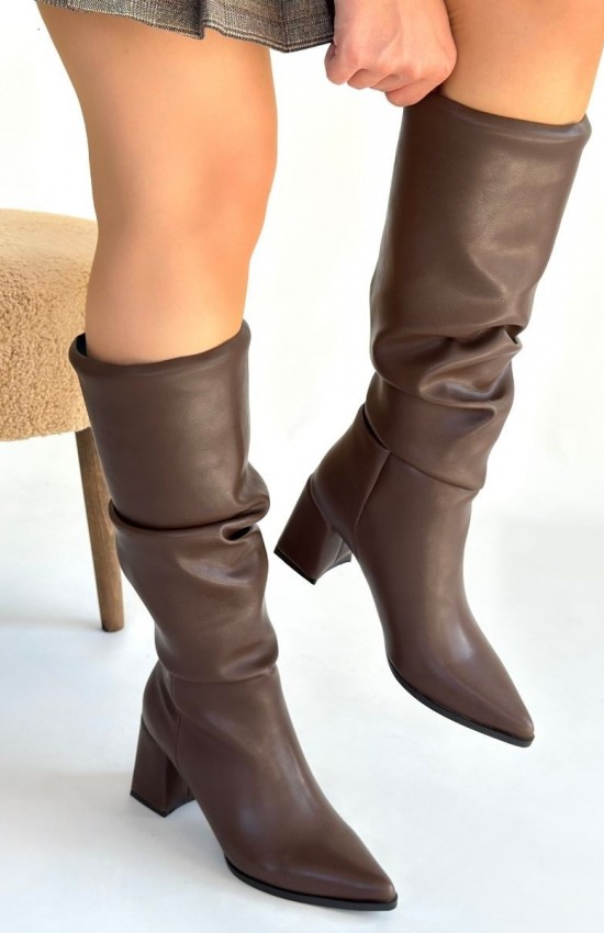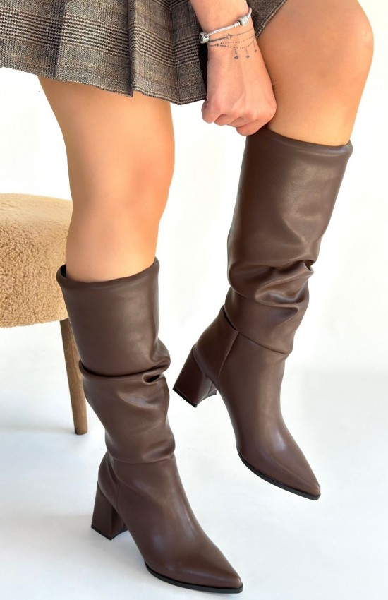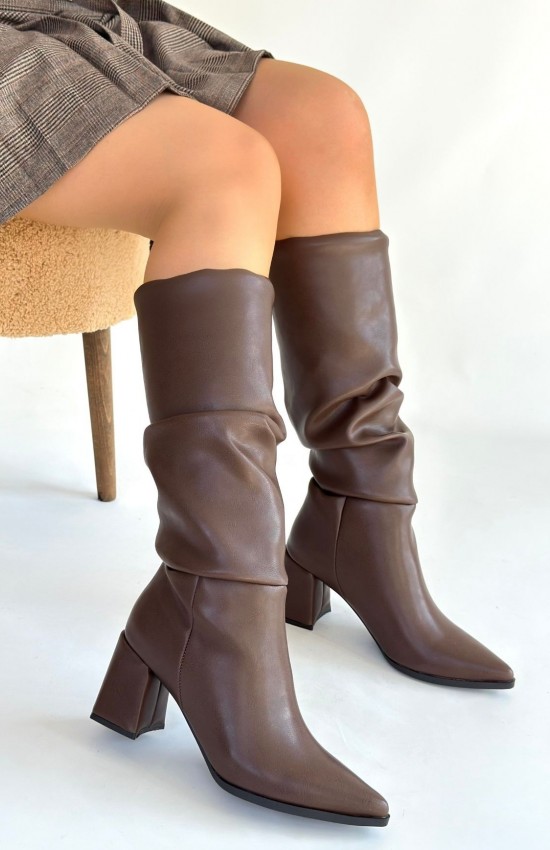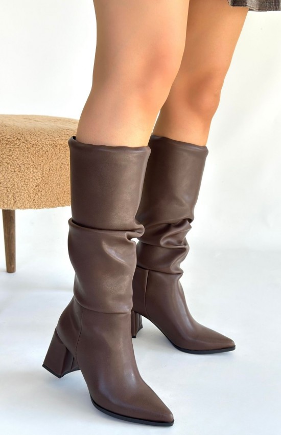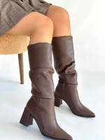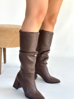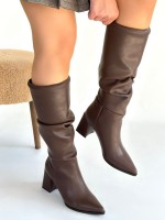 Pitay Kahverengi Cilt Körüklü Topuklu Çizme