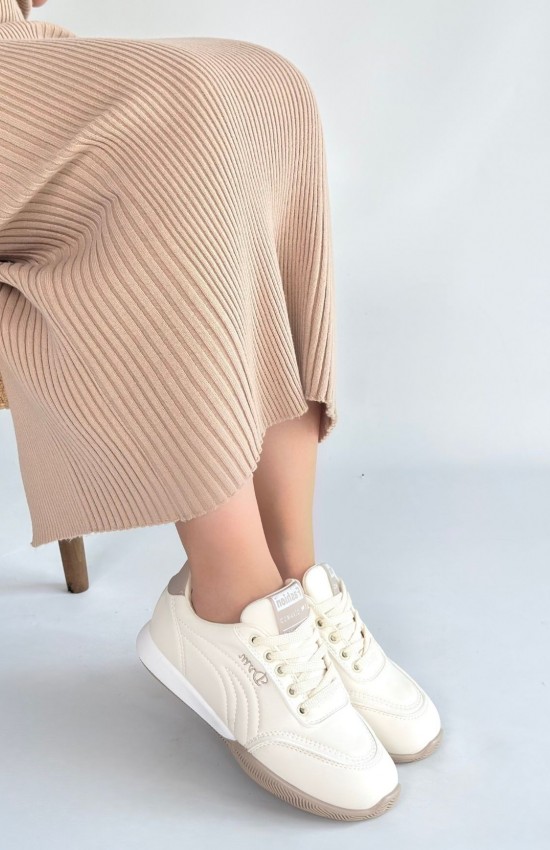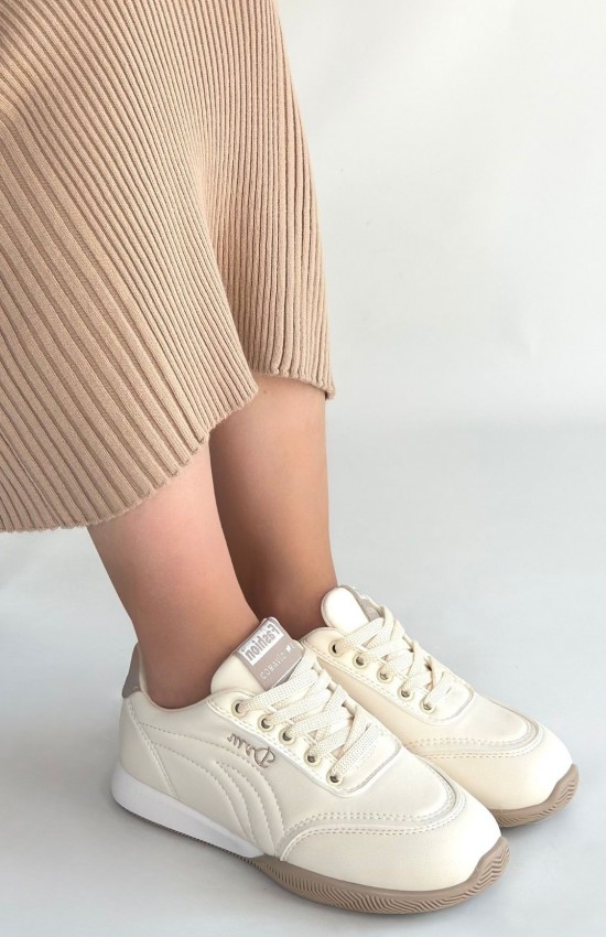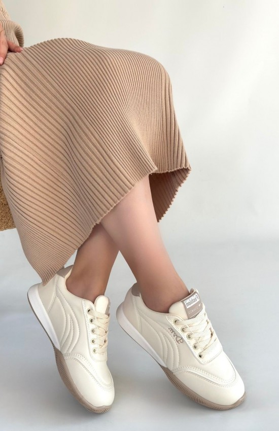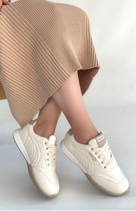 Tawen Bej Cilt Bağcıklı Spor Ayakkabı