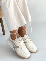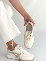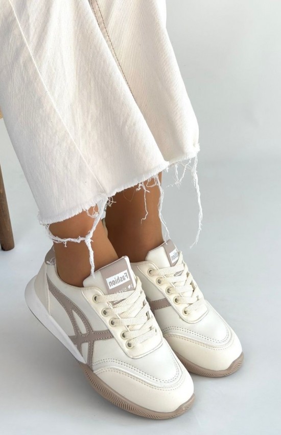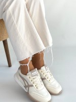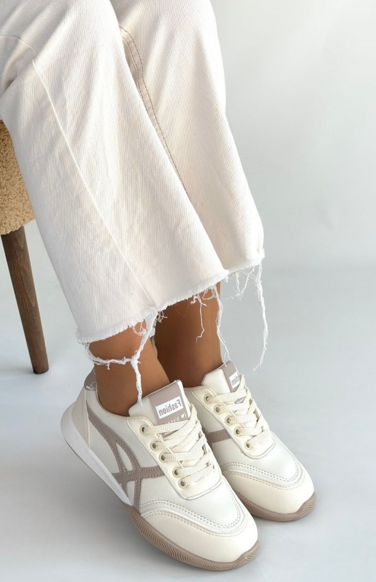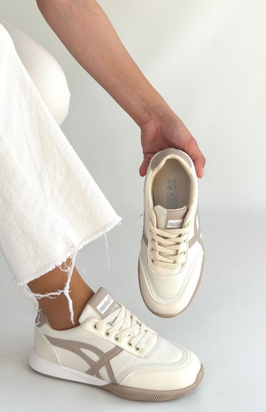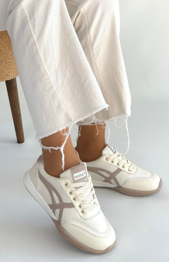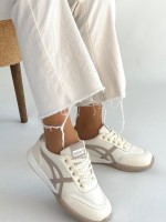 Zlay Bej Cilt Vizon Detaylı Bağcıklı Spor Ayakkabı